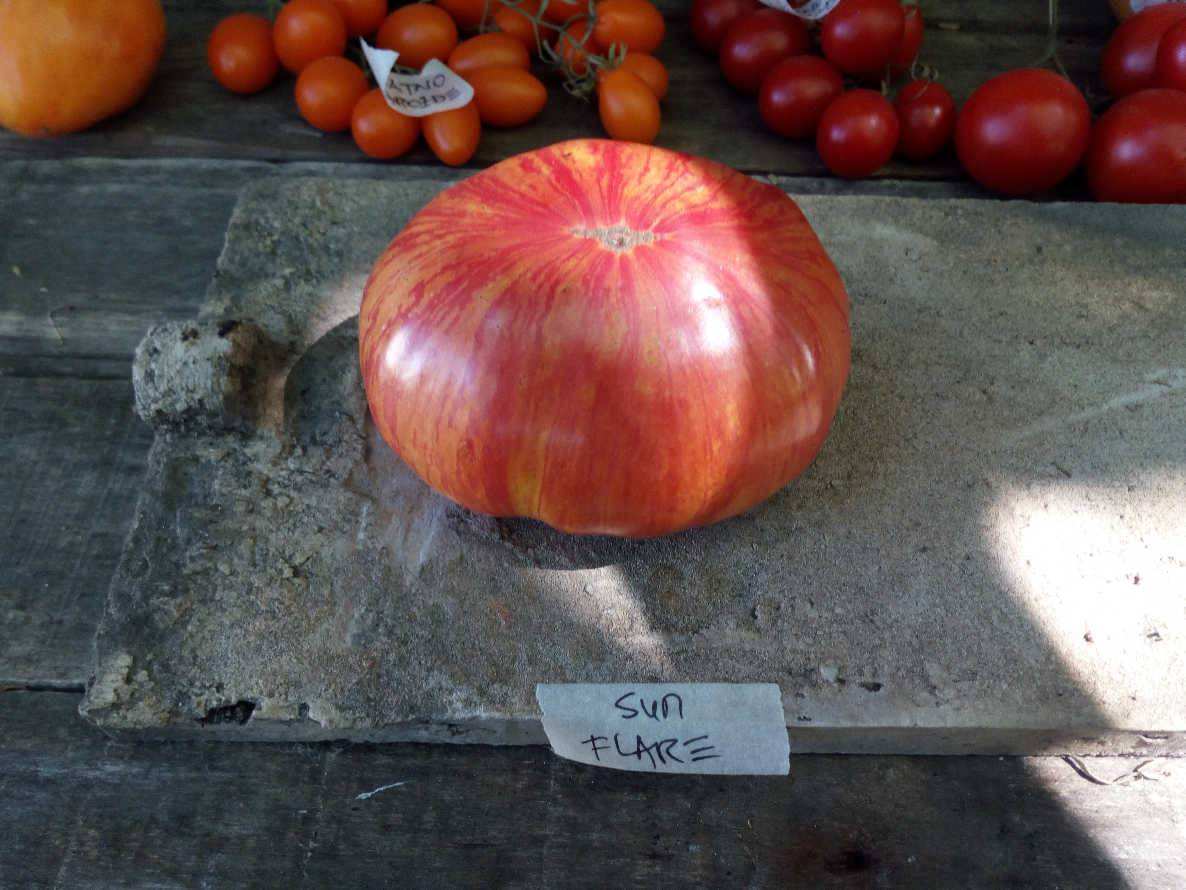 Pozmnat i kao Solar Flare, još jedan lep, kurpan mesnati paradajz sa Wild Boar Farme. Po nekim tekstovima, otporniji na standardne bolesti paradajza, ali ja to nisam primetio. Ali je zato vrlo lep i rodan bi-kolor paradajz, odličan za ukusne, bogate salate.